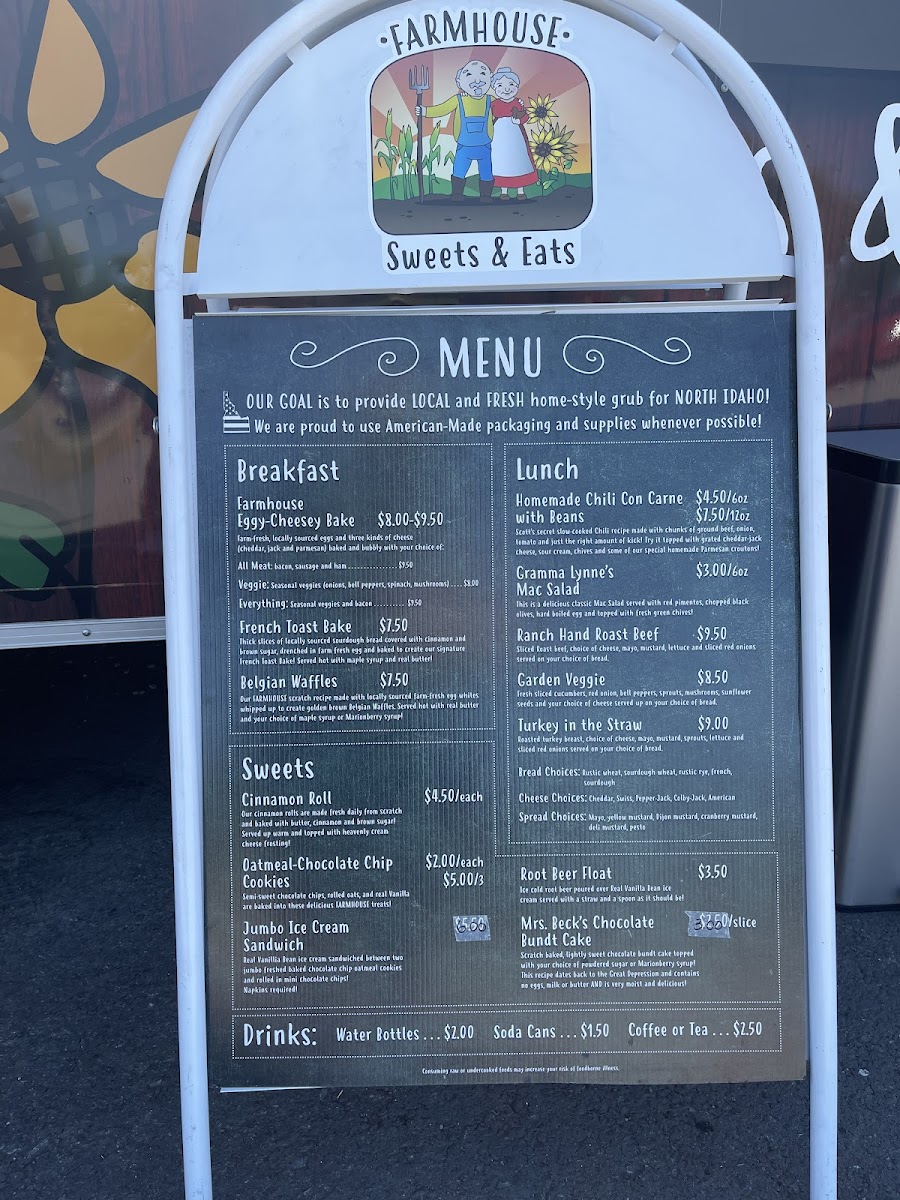 Drinks are simple yet refreshing, with options like bottled water and soda cans to quench your thirst. Whether you're stopping by for a quick breakfast, a casual lunch, or indulging in something sweet, the Farmhouse Sweets And Eats Menu has something for everyone. It’s a place where comfort food meets homemade charm, and each dish is prepared with care, ensuring a cozy dining experience that will keep you coming back for more.